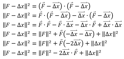 Using the properties of dot products, we can rewrite ||F - Δx||²: